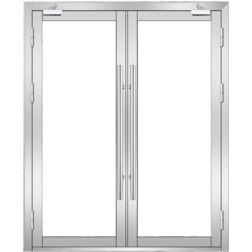 防火玻璃門為用不銹鋼材料制作門框、門扇骨架和門扇面板,門扇內若填充材料,則填充對人體無毒無害的防火隔熱材料。并配以防火五金配件所組成的具有一定耐火性能的門,不銹鋼防火門除具有普通門的作用外。
