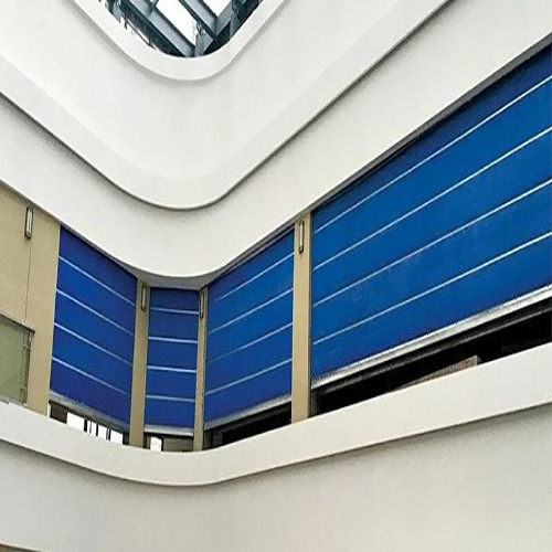 3、防火電機有多種功能,若發生火災,則電機會自動運轉,把門關閉,可以根據需要,在門簾向下運行到一定高度(一般為1.8m)時,會自動停止60-90秒后再向下關閉。