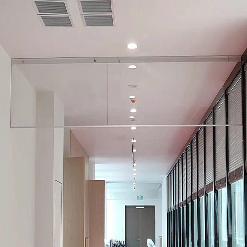擋煙垂壁,屬于固定式擋煙垂壁的一種,是用防火玻璃制成,垂直固定安裝在建筑頂棚、橫梁或吊頂下,能滿足設定擋煙高度,在火災時形成一定的蓄煙空間的擋煙分隔設施,而耐高溫性能要求在620±20℃溫度下保持30分鐘。具有透明度高、美觀大方、易于清潔等優點,同時也具有較好的防火性能和安全性。在火災發生時,鋼化玻璃擋煙垂壁能夠有效地阻止煙霧和有毒氣體的擴散,保護人員的安全。