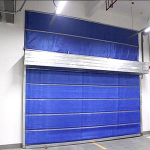 消防聯動電動控制下降:消防控制中心的控制系統打開火區防火卷簾的電源,使火區防火卷簾以設定的速度下降到地面。