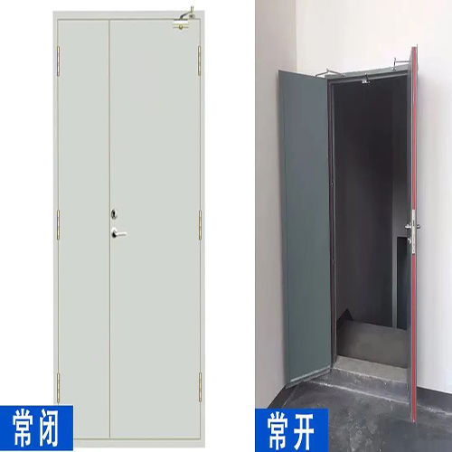 用有花鍍鋅鋼板材料制作門框、門扇表面,門扇內填充對人體無毒無害的防火門芯板,并配以防火五金配件所組成的具有不同時限耐火完整性和隔熱性的門。