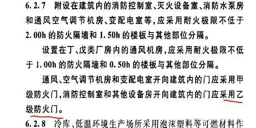 《建筑設計防火規范》(GB 50016-2014)(2018 年版):第 6.2.7 條規定,附設在建筑內的消防控制室、滅火設備室、消防水泵房和通風空氣調節機房、變配電室等,應采用耐火極限不低于 2.00h 的防火隔墻和 1.50h 的樓板與其他部位分隔。通風、空氣調節機房和變配電室開向建筑內的門應采用甲級防火門,消防控制室和其他設備房開向建筑內的門應采用乙級防火門。